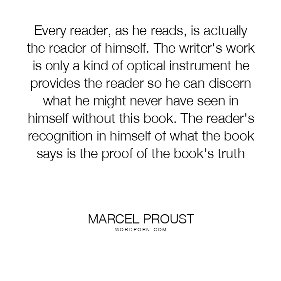 Every reader, as he reads, is actually the reader of himself. The writer's work is only a kind of optical instrument he provides the reader so he can discern what he might never have seen in himself without this book. The reader's recognition in himself of what the book says is the proof of the book's truth