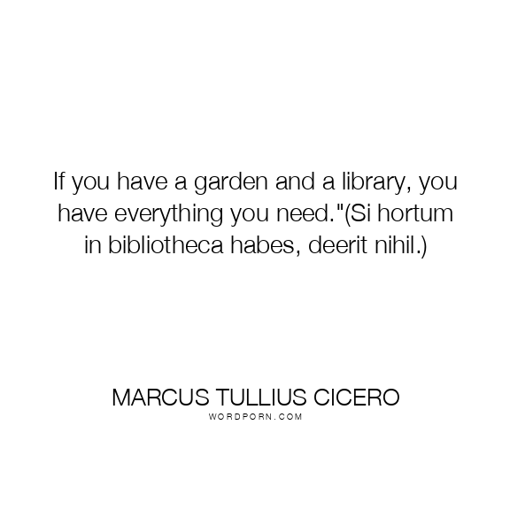 If you have a garden and a library, you have everything you need."(Si hortum in bibliotheca habes, deerit nihil.)