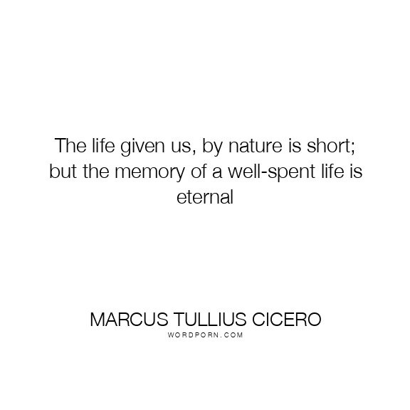 The life given us, by nature is short; but the memory of a well-spent life is eternal