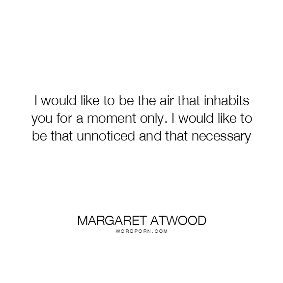 I would like to be the air that inhabits you for a moment only. I would like to be that unnoticed and that necessary