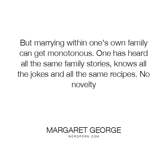 But marrying within one's own family can get monotonous. One has heard all the same family stories, knows all the jokes and all the same recipes. No novelty