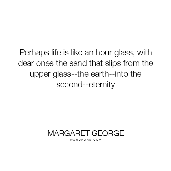 Perhaps life is like an hour glass, with dear ones the sand that slips from the upper glass--the earth--into the second--eternity