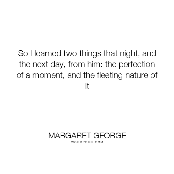 So I learned two things that night, and the next day, from him: the perfection of a moment, and the fleeting nature of it