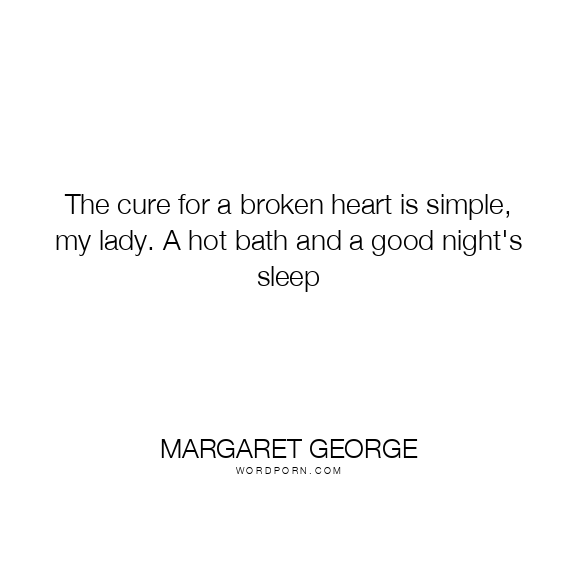 The cure for a broken heart is simple, my lady. A hot bath and a good night's sleep