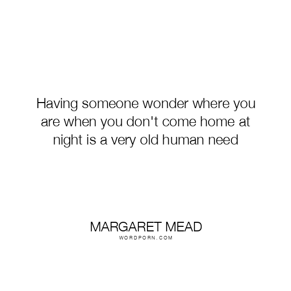Having someone wonder where you are when you don't come home at night is a very old human need