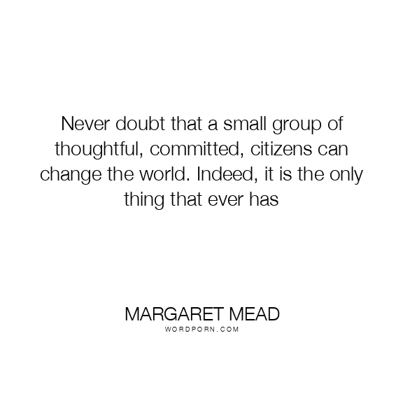 Never doubt that a small group of thoughtful, committed, citizens can change the world. Indeed, it is the only thing that ever has