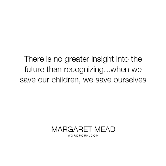 There is no greater insight into the future than recognizing...when we save our children, we save ourselves