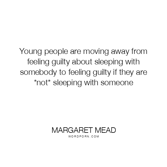 Young people are moving away from feeling guilty about sleeping with somebody to feeling guilty if they are *not* sleeping with someone