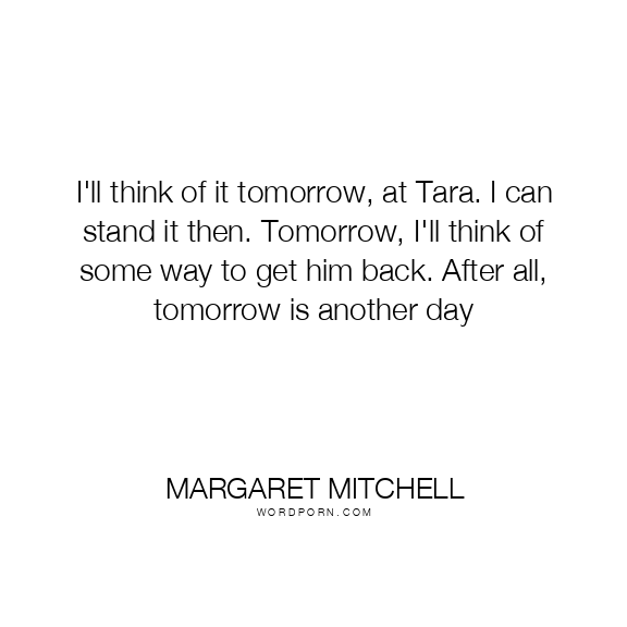 I'll think of it tomorrow, at Tara. I can stand it then. Tomorrow, I'll think of some way to get him back. After all, tomorrow is another day