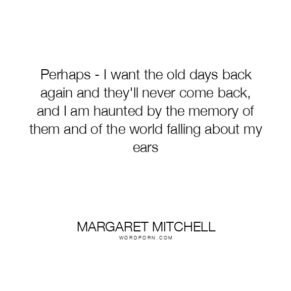 Perhaps - I want the old days back again and they'll never come back, and I am haunted by the memory of them and of the world falling about my ears