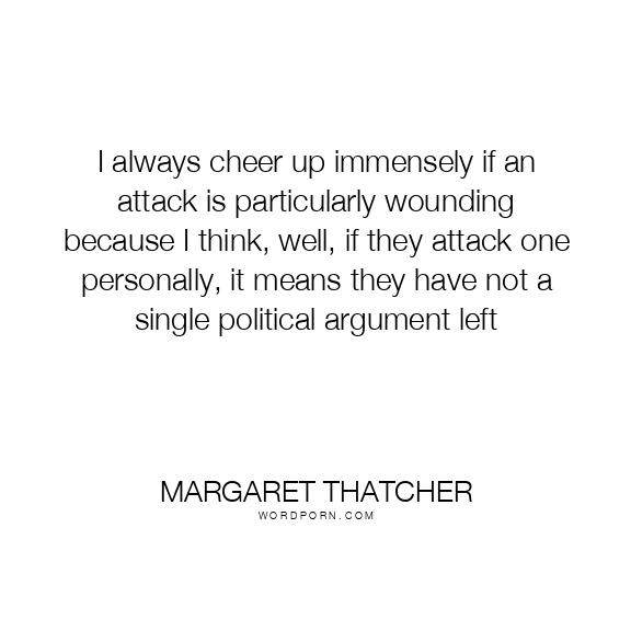 I always cheer up immensely if an attack is particularly wounding because I think, well, if they attack one personally, it means they have not a single political argument left