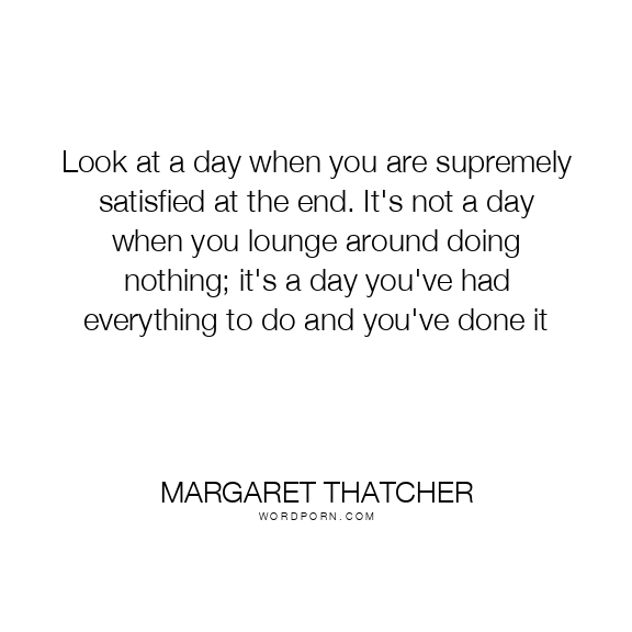 Look at a day when you are supremely satisfied at the end. It's not a day when you lounge around doing nothing; it's a day you've had everything to do and you've done it