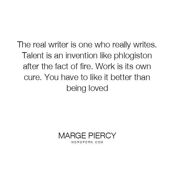 The real writer is one who really writes. Talent is an invention like phlogiston after the fact of fire. Work is its own cure. You have to like it better than being loved