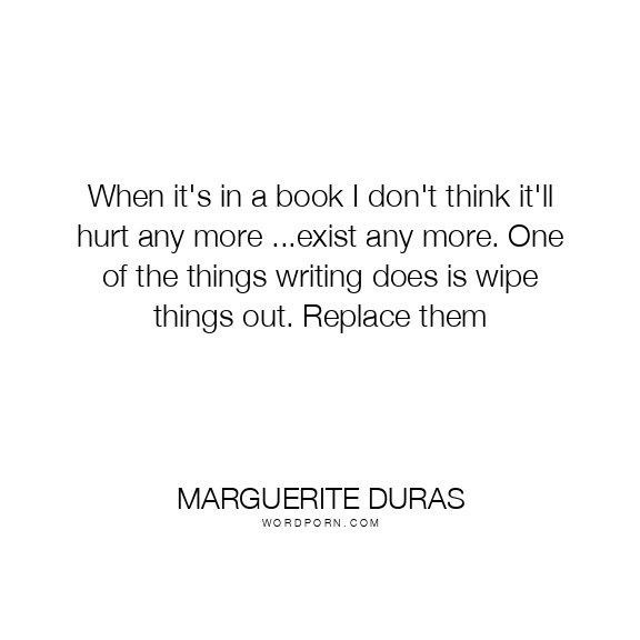 When it's in a book I don't think it'll hurt any more ...exist any more. One of the things writing does is wipe things out. Replace them