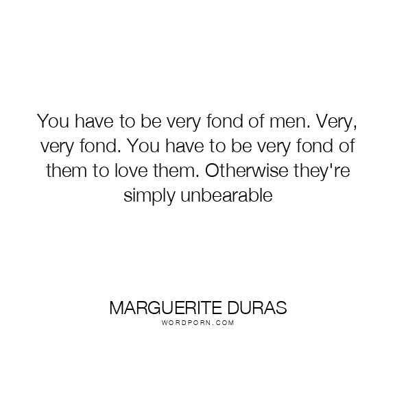 You have to be very fond of men. Very, very fond. You have to be very fond of them to love them. Otherwise they're simply unbearable