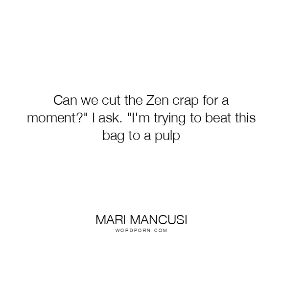 Can we cut the Zen crap for a moment?" I ask. "I'm trying to beat this bag to a pulp