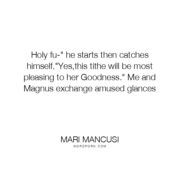 Holy fu-" he starts then catches himself."Yes,this tithe will be most pleasing to her Goodness." Me and Magnus exchange amused glances