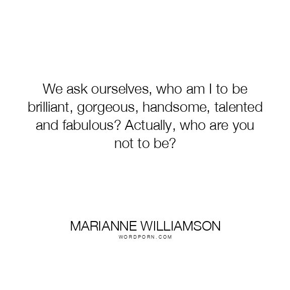 We ask ourselves, who am I to be brilliant, gorgeous, handsome, talented and fabulous? Actually, who are you not to be?