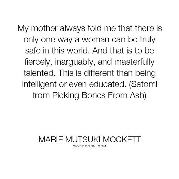 My mother always told me that there is only one way a woman can be truly safe in this world. And that is to be fiercely, inarguably, and masterfully talented. This is different than being intelligent or even educated. (Satomi from Picking Bones From Ash)