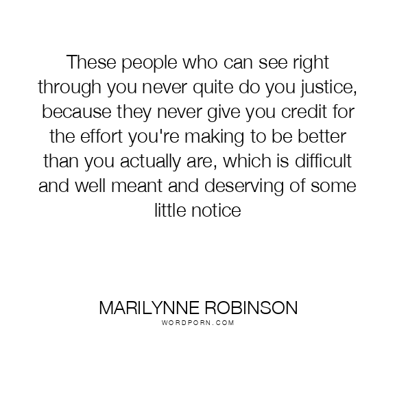 These people who can see right through you never quite do you justice, because they never give you credit for the effort you're making to be better than you actually are, which is difficult and well meant and deserving of some little notice