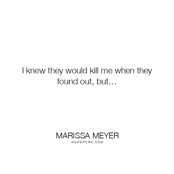 Marissa Meyer quote. I knew they would kill me when they found out, but…