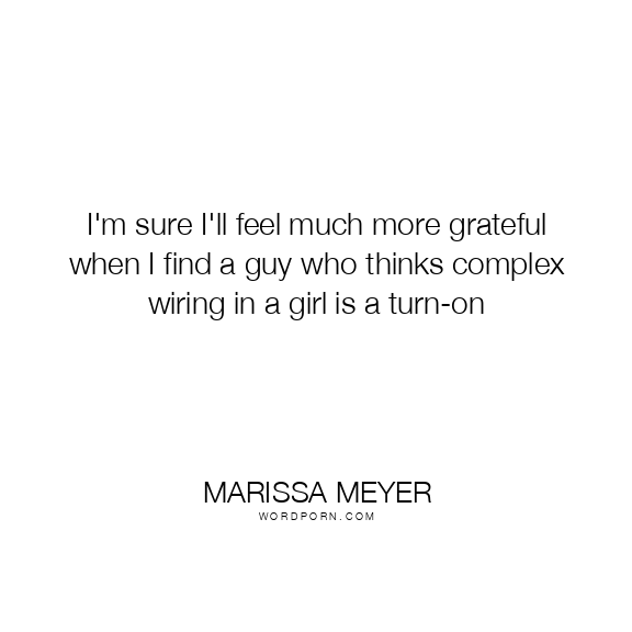 Marissa Meyer quote. I'm sure I'll feel much more grateful when I find a guy who thinks complex wiring in a girl is a turn-on