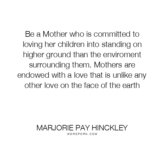 Be a Mother who is committed to loving her children into standing on higher ground than the enviroment surrounding them. Mothers are endowed with a love that is unlike any other love on the face of the earth