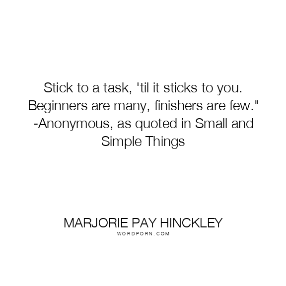 Stick to a task, 'til it sticks to you. Beginners are many, finishers are few." -Anonymous, as quoted in Small and Simple Things