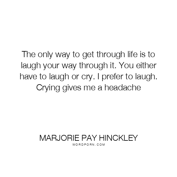 The only way to get through life is to laugh your way through it. You either have to laugh or cry. I prefer to laugh. Crying gives me a headache