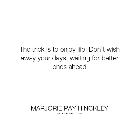 The trick is to enjoy life. Don't wish away your days, waiting for better ones ahead
