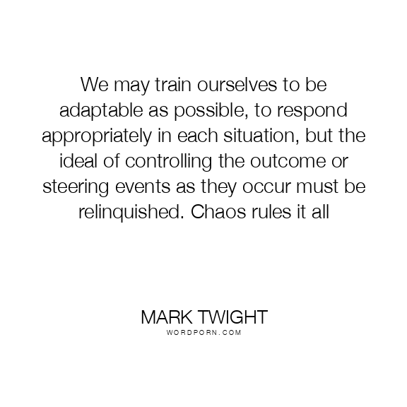 We may train ourselves to be adaptable as possible, to respond appropriately in each situation, but the ideal of controlling the outcome or steering events as they occur must be relinquished. Chaos rules it all