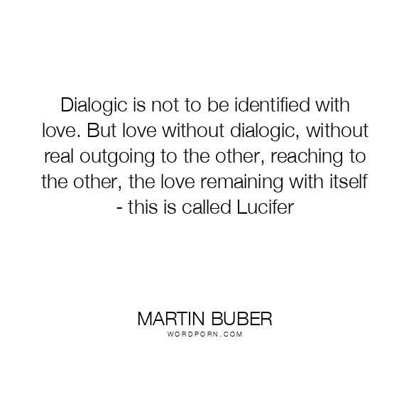Dialogic is not to be identified with love. But love without dialogic, without real outgoing to the other, reaching to the other, the love remaining with itself - this is called Lucifer