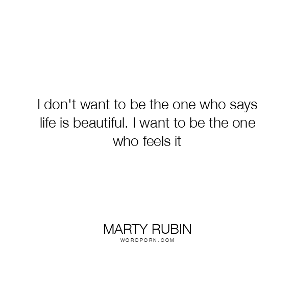 I don't want to be the one who says life is beautiful. I want to be the one who feels it