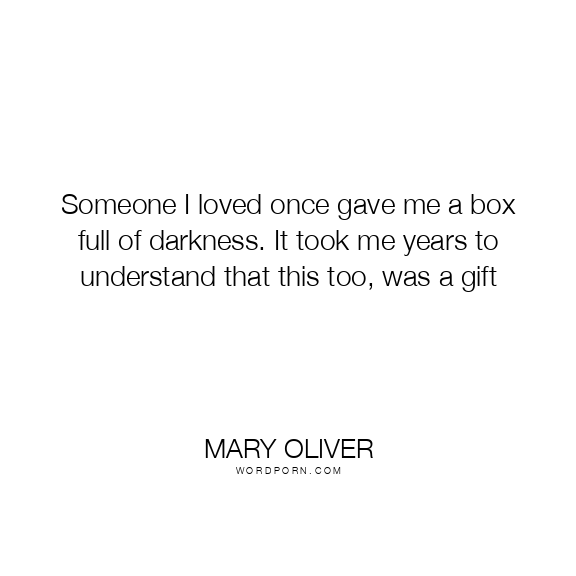 Someone I loved once gave me a box full of darkness. It took me years to understand that this too, was a gift