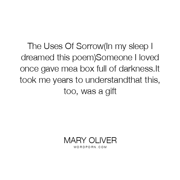 The Uses Of Sorrow(In my sleep I dreamed this poem)Someone I loved once gave mea box full of darkness.It took me years to understandthat this, too, was a gift
