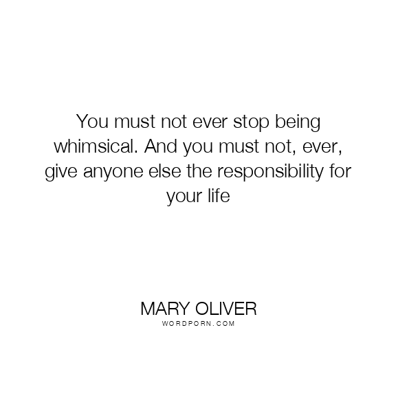 You must not ever stop being whimsical. And you must not, ever, give anyone else the responsibility for your life