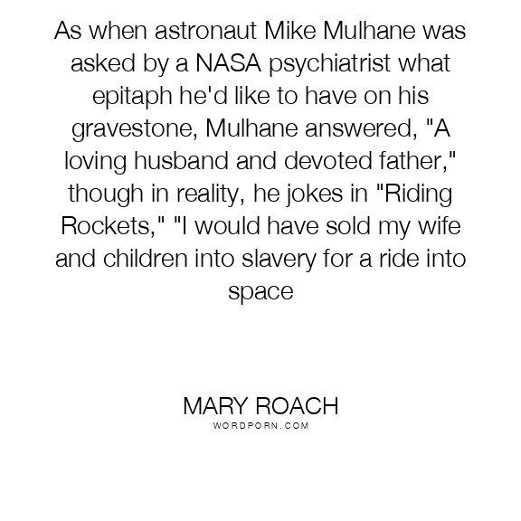 Mary Roach quote. As when astronaut Mike Mulhane was asked by a NASA psychiatrist what epitaph he'd like to have on his gravestone, Mulhane answered,