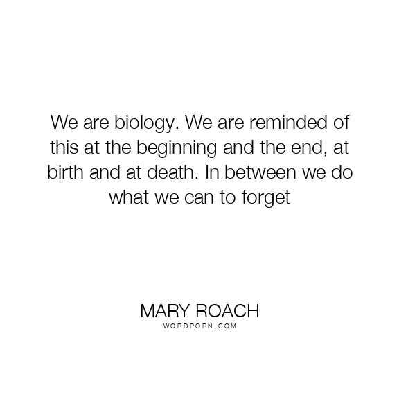 Mary Roach quote. We are biology. We are reminded of this at the beginning and the end, at birth and at death. In between we do what we can to forget