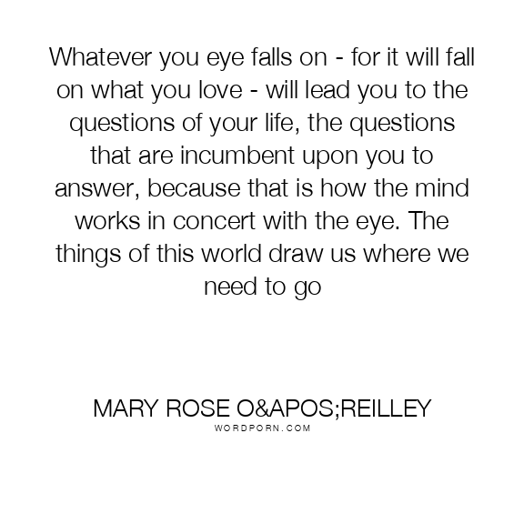 Whatever you eye falls on - for it will fall on what you love - will lead you to the questions of your life, the questions that are incumbent upon you to answer, because that is how the mind works in concert with the eye. The things of this world draw us where we need to go