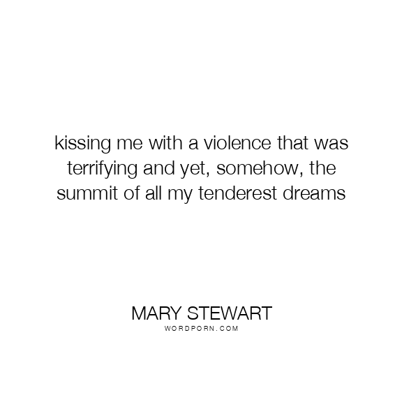 Mary Stewart quote. kissing me with a violence that was terrifying and yet, somehow, the summit of all my tenderest dreams