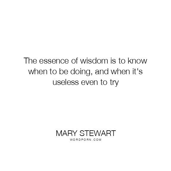 Mary Stewart quote. The essence of wisdom is to know when to be doing, and when it's useless even to try