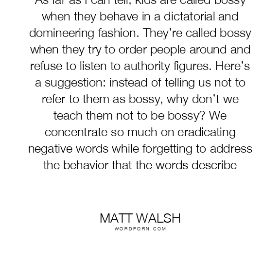 As far as I can tell, kids are called bossy when they behave in a dictatorial and domineering fashion. They’re called bossy when they try to order people around and refuse to listen to authority figures. Here’s a suggestion: instead of telling us not to refer to them as bossy, why don’t we teach them not to be bossy? We concentrate so much on eradicating negative words while forgetting to address the behavior that the words describe