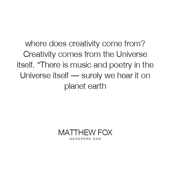 where does creativity come from? Creativity comes from the Universe itself. “There is music and poetry in the Universe itself — surely we hear it on planet earth