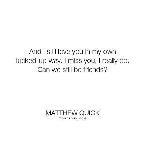 And I still love you in my own fucked-up way. I miss you, I really do. Can we still be friends?