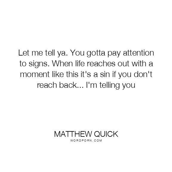 Let me tell ya. You gotta pay attention to signs. When life reaches out with a moment like this it's a sin if you don't reach back... I'm telling you