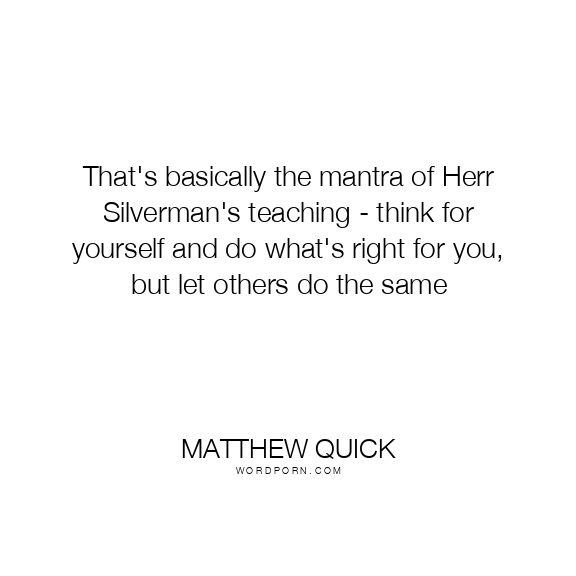 That's basically the mantra of Herr Silverman's teaching - think for yourself and do what's right for you, but let others do the same