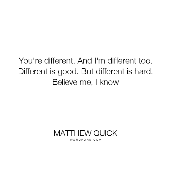 You're different. And I'm different too. Different is good. But different is hard. Believe me, I know