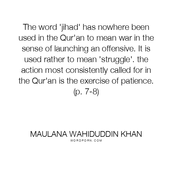 The word 'jihad' has nowhere been used in the Qur'an to mean war in the sense of launching an offensive. It is used rather to mean 'struggle'. the action most consistently called for in the Qur'an is the exercise of patience. (p. 7-8)