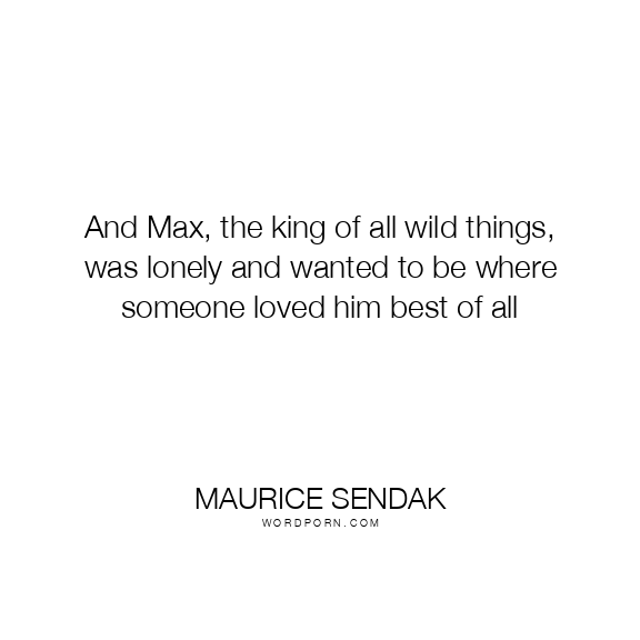 And Max, the king of all wild things, was lonely and wanted to be where someone loved him best of all