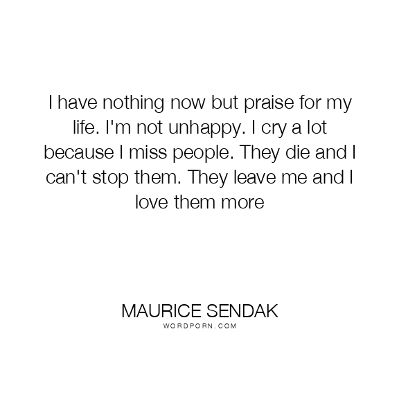 I have nothing now but praise for my life. I'm not unhappy. I cry a lot because I miss people. They die and I can't stop them. They leave me and I love them more